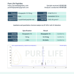 Pure Life Peptides™ is proud to offer Kisspeptin-10, a high-purity research peptide studied for its role in reproductive signaling and hormonal coordination. As a short-chain fragment of the naturally occurring kisspeptin protein, Kisspeptin-10 is frequently explored in laboratory settings for its influence on the hypothalamic-pituitary-gonadal (HPG) axis.