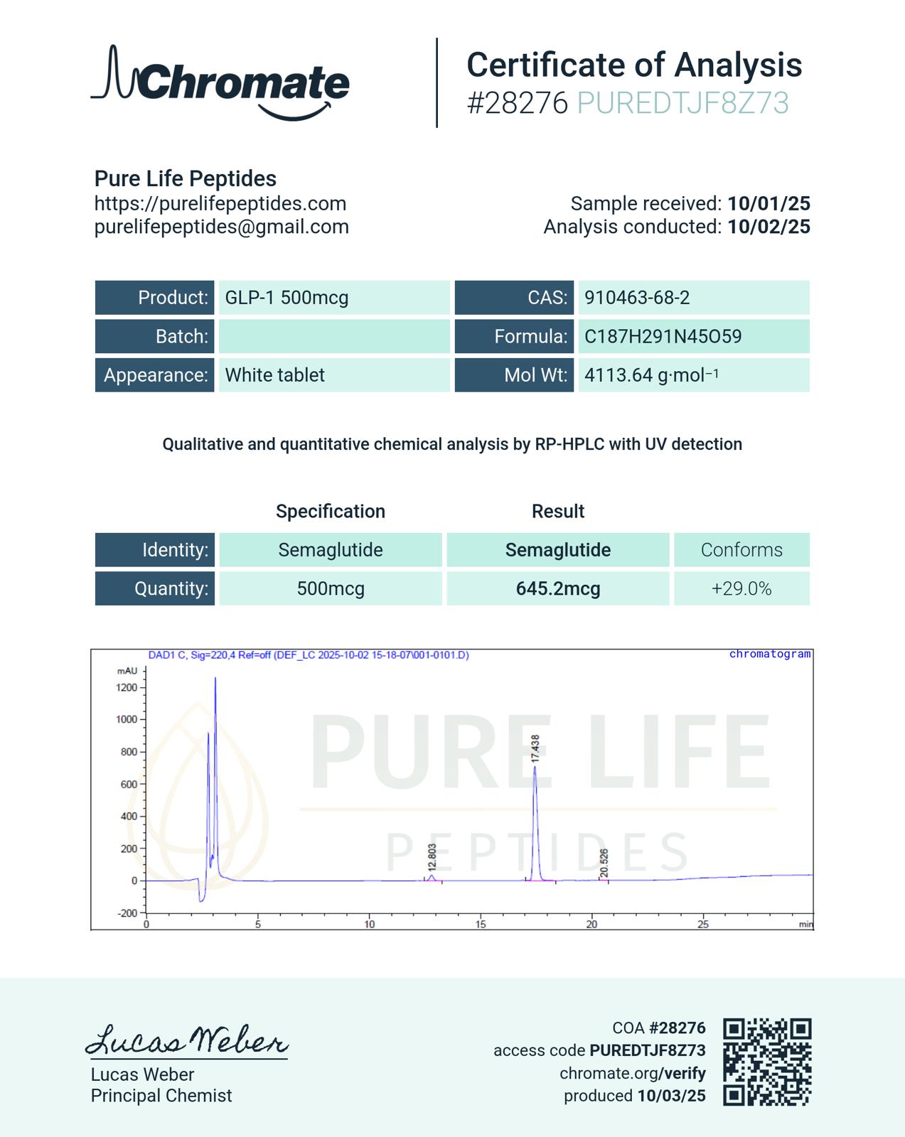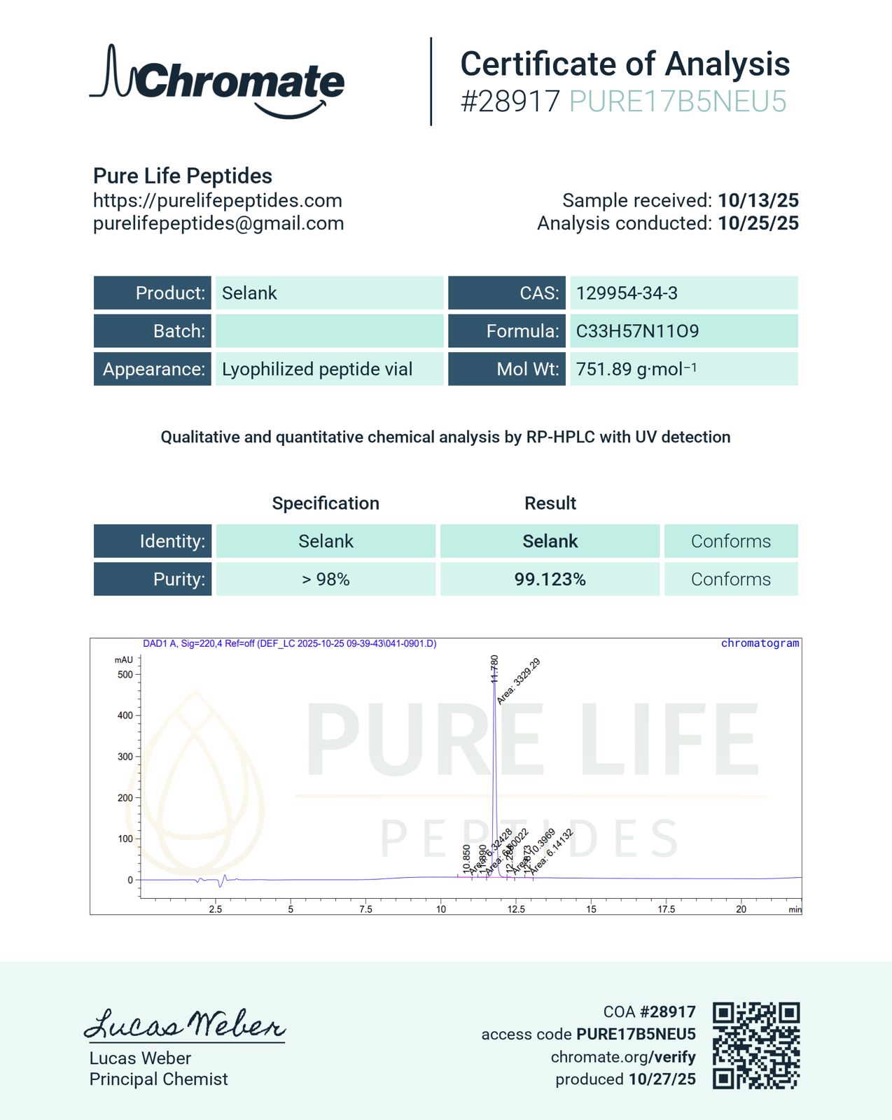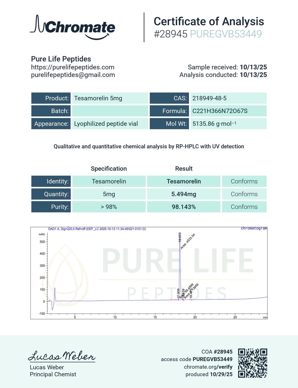 At Pure Life Peptides, quality isn’t claimed it’s proven. Every product we offer is backed by rigorous analytical testing and a Certificate of Analysis (COA), offering researchers full visibility into the integrity of their compounds.